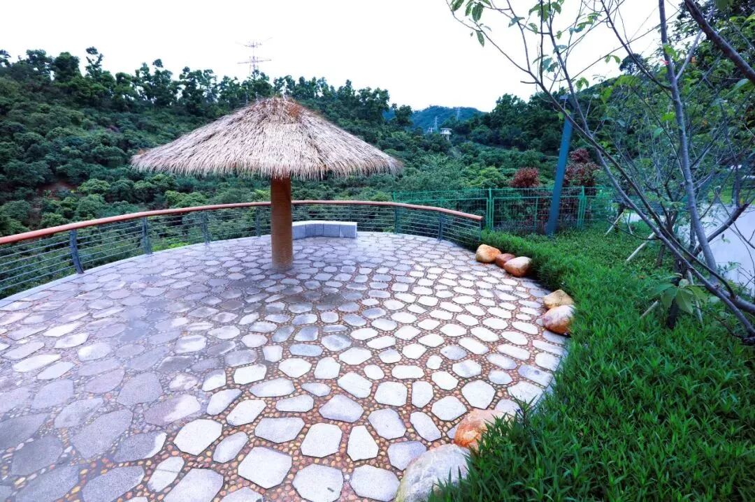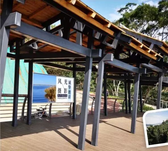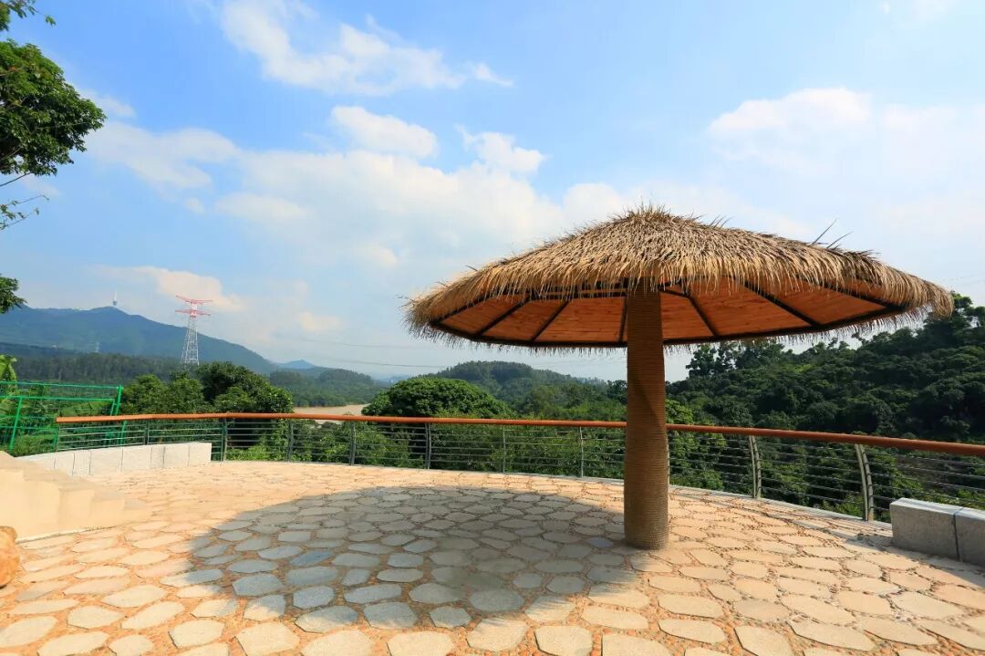 平台位于半山腰,可俯瞰深圳水库和梧桐山的景色,尽揽淘金山美景,故名淘金揽秀。