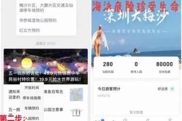 1、关注“大梅沙”微信公众号,点击预约指南,点击预约入园