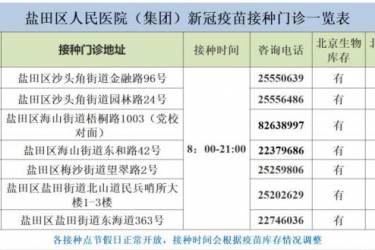 深圳宝田医院及社康9月14日新冠疫苗供应情况