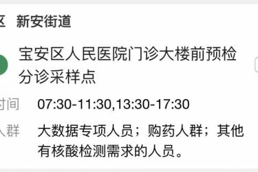 布吉街道辖区内绿码人员,按照应检尽检、愿检尽检原则,可就近到以下核酸采样点进行核酸检测