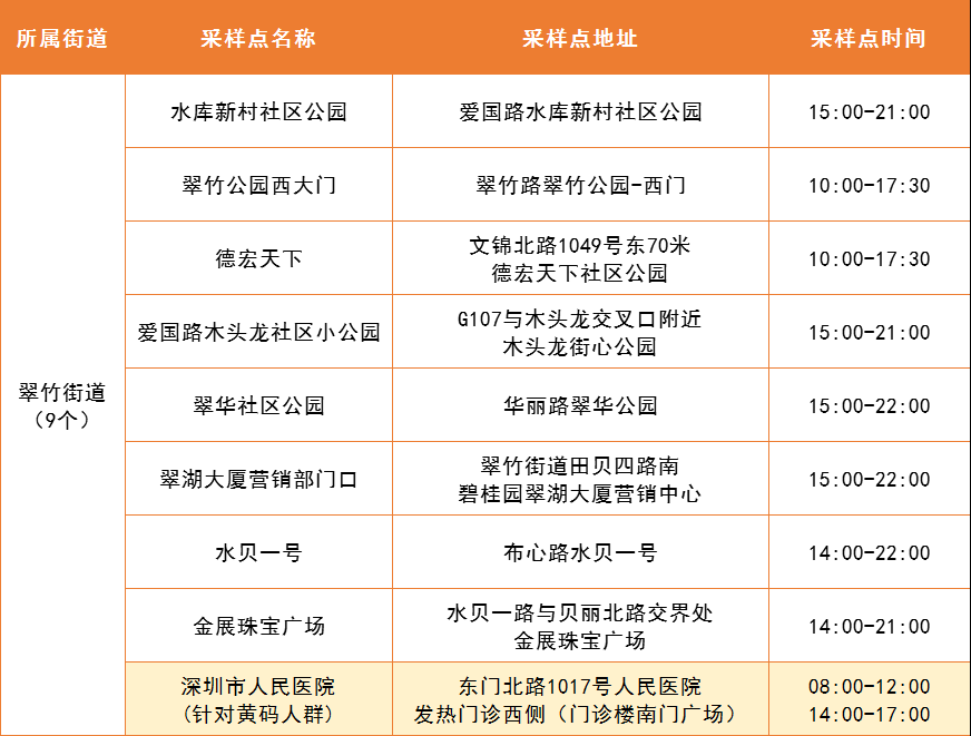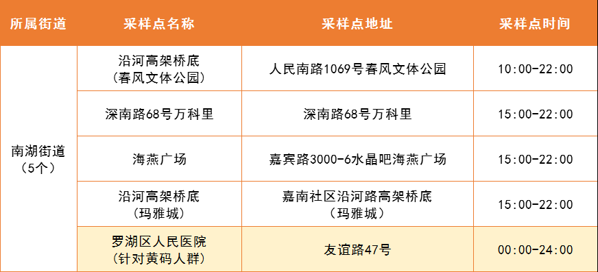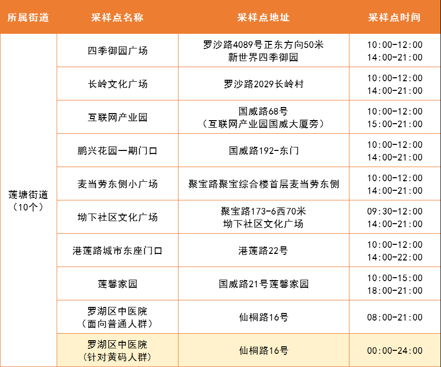 5月7日,罗湖区设置以下便民核酸采样点为居民朋友们提供服务。部分内部采样点暂不对外公布,采样点会根据疫情形势动态调整,如有出入,请以各街道实际公布为准。