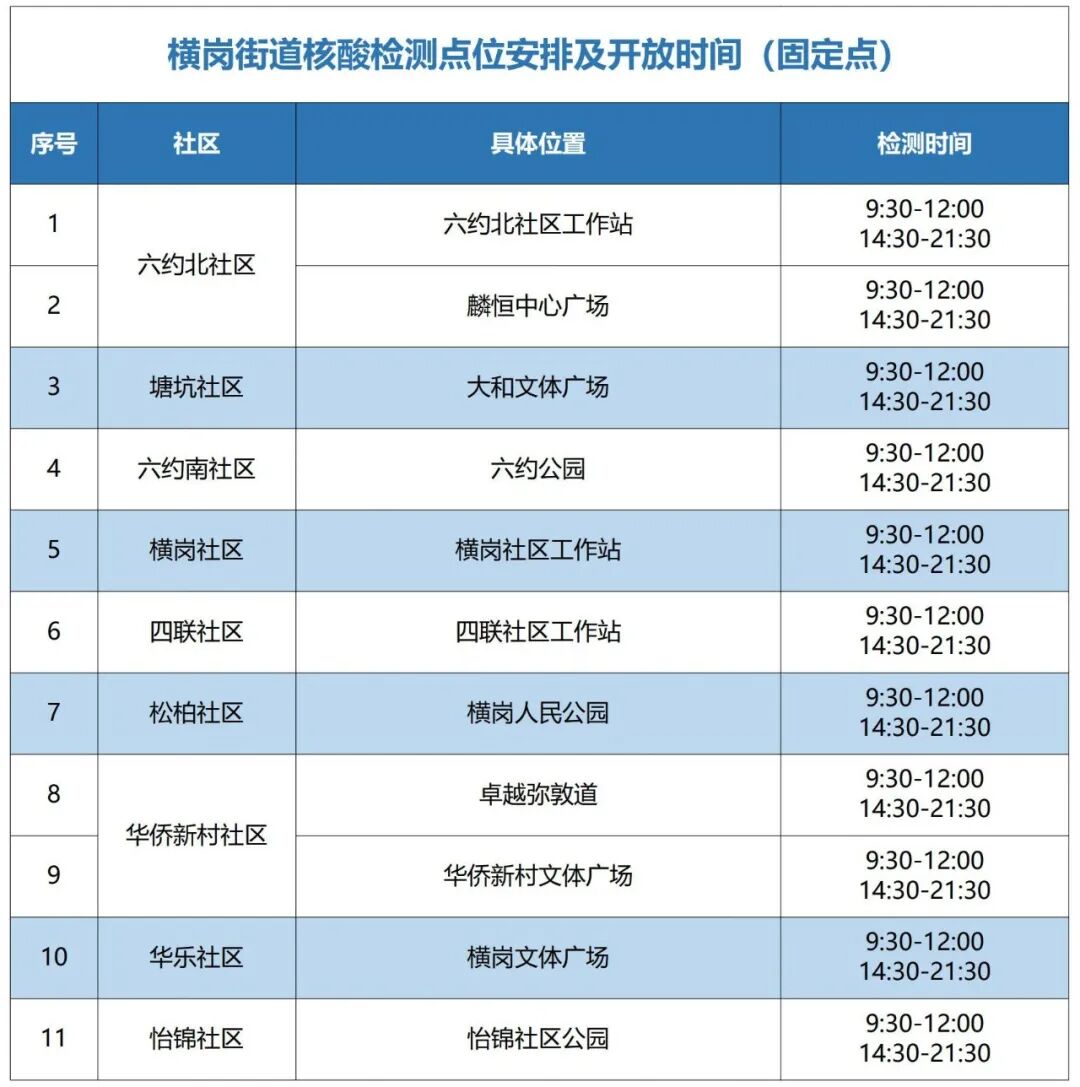 龙岗区横岗街道核酸检测点位安排及开放时间(固定点)
