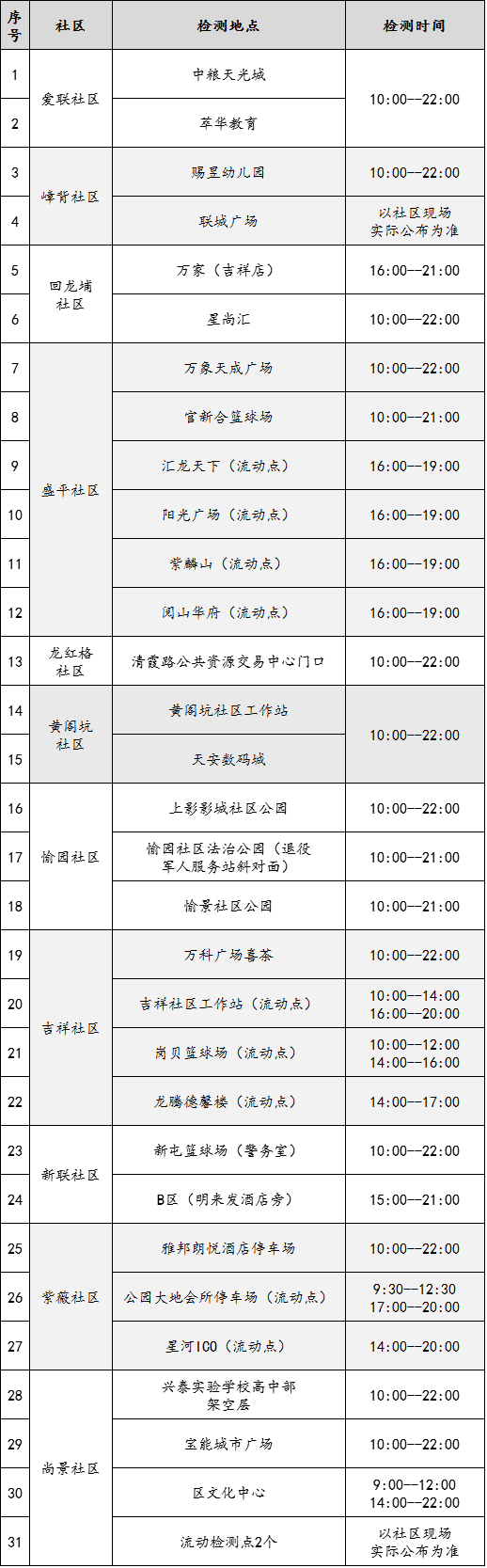 5月10日为龙岗区龙城街道本轮区域核酸检测最后一天
