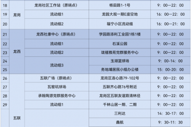 龙岗区南湾街道疫苗接种安排(5月20日)