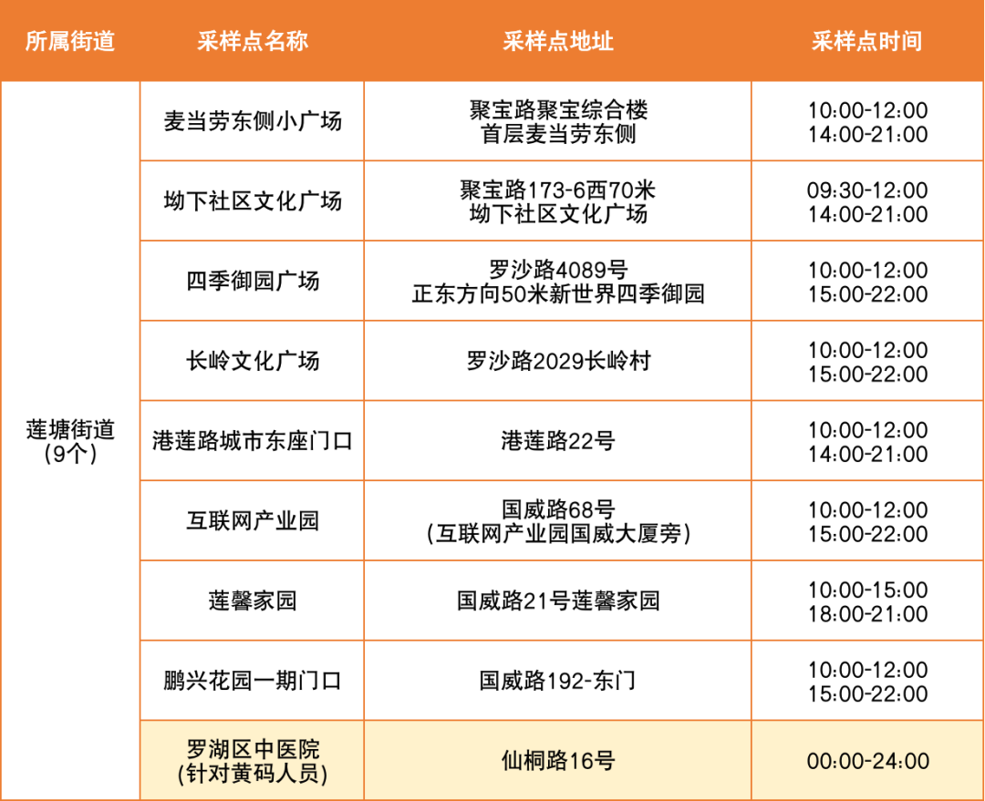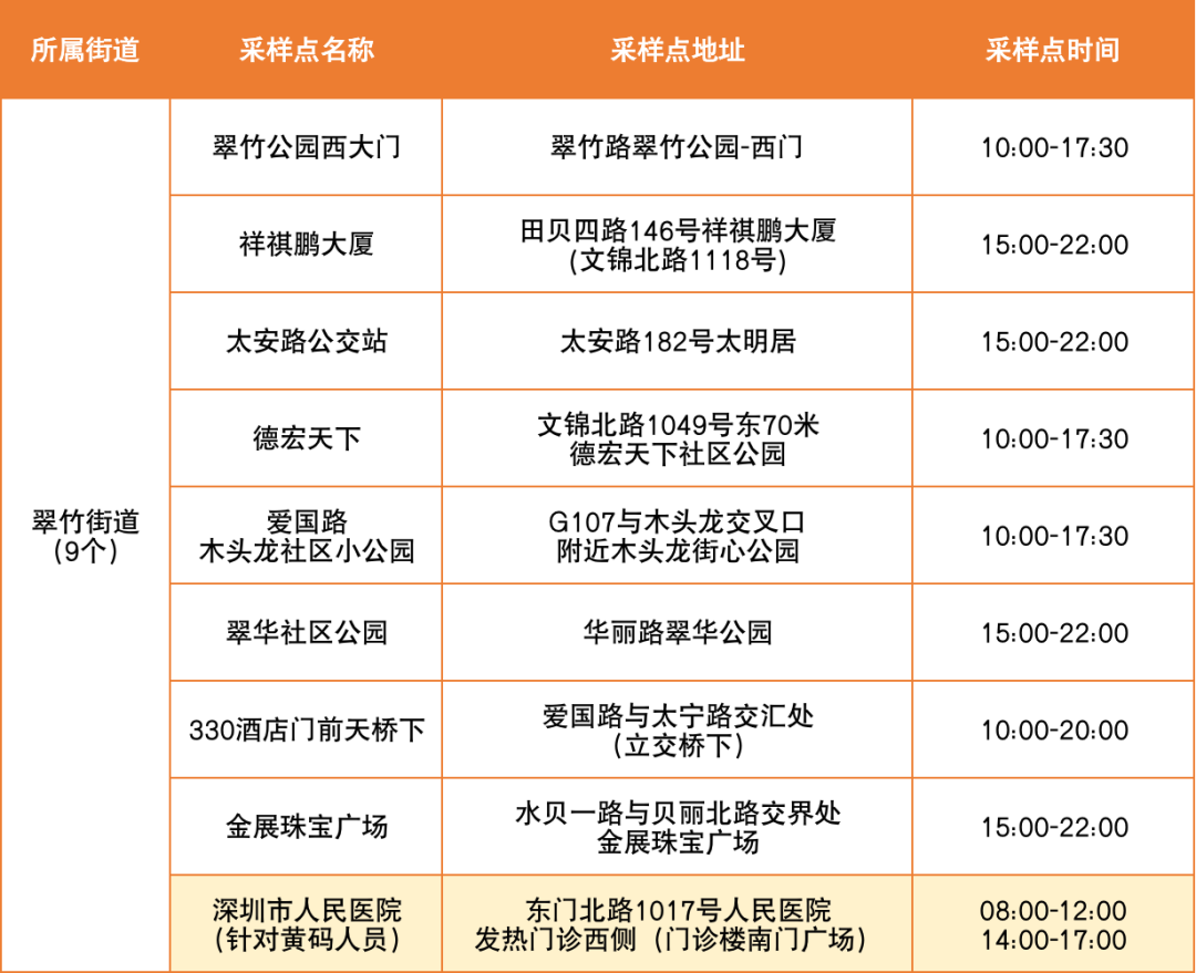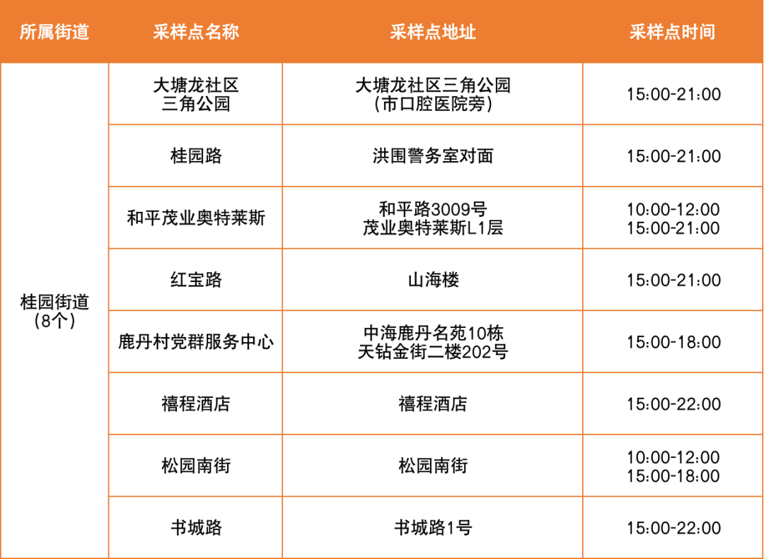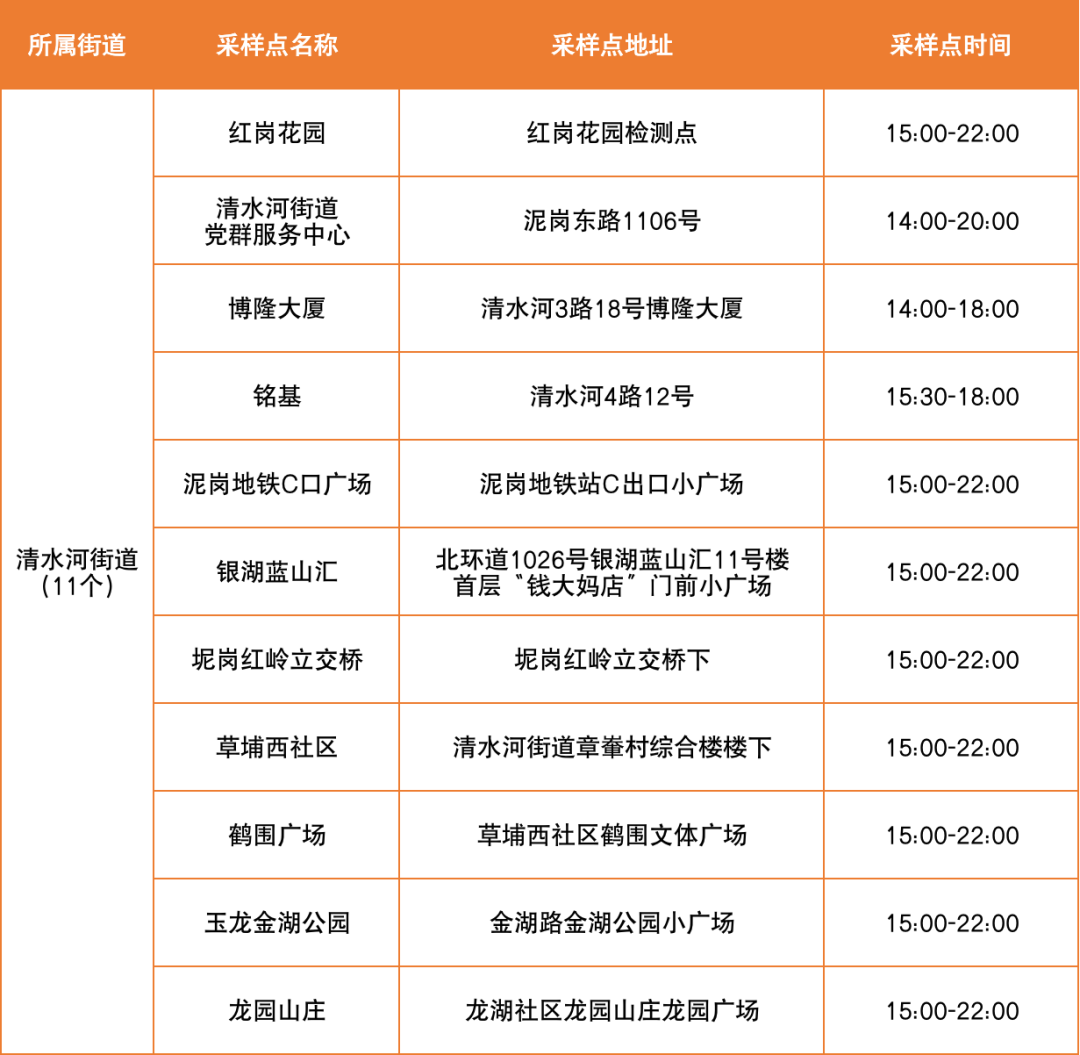 采样点如有调整,请以各街道实时通知或市卫健委便民核酸点页面为准。