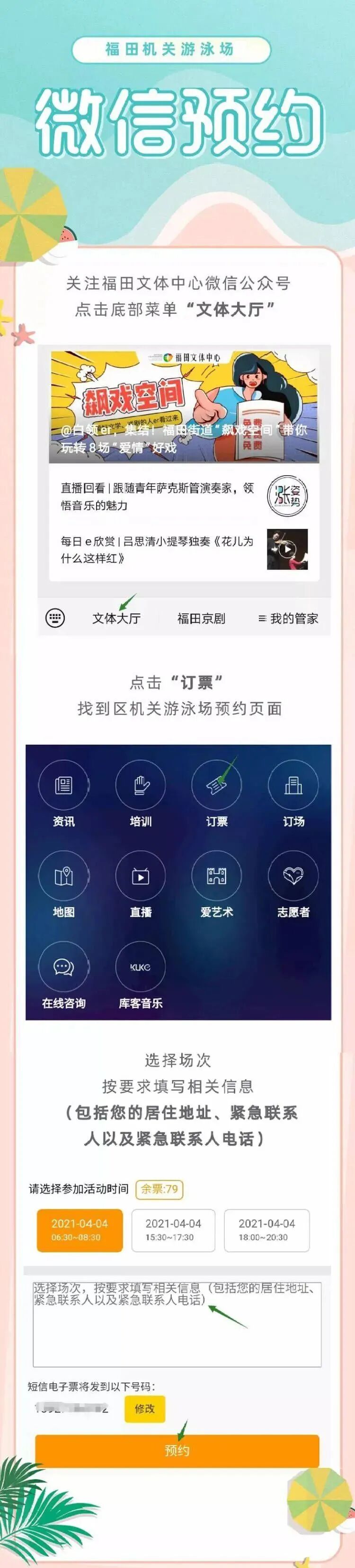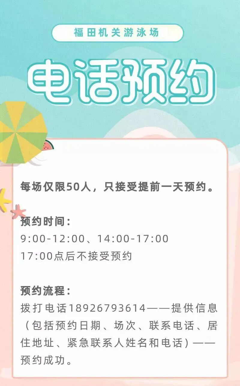 1、须在福田文体中心微信公众号预约或电话预约,现场扫码、测量体温后方可进入游泳场。