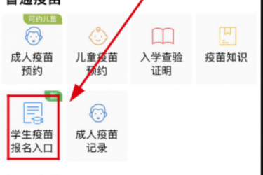 进入【打疫苗】→【学生疫苗报名入口】(注意,此模块不能自主预约社康进行接种,需要学校组织集体接种,学生需先完成信息预登记后才能进行报名)