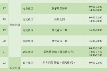 今年共有坪山区妇幼保健院、坪山区人民医院、碧岭社康、秀新社康、石井比亚迪社康等5家医疗机构提供两癌免费筛查服务。其中,石井比亚迪社康仅提供乳腺癌免费筛查服务。具体情况如下: