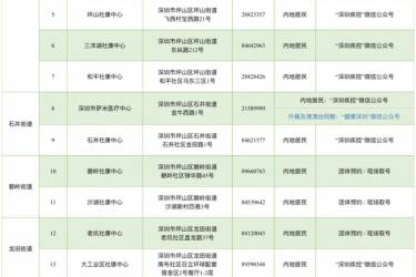 南山区筛查网点信息一览表